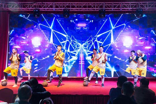 本次年會(huì)由公司內(nèi)部三個(gè)部門(mén)聯(lián)合承辦,所有節(jié)目均由承辦部門(mén)自編、自導(dǎo)、自演,充分展現(xiàn)了三圣人多才多藝的綜合素質(zhì)和自信向上的精神面貌。帥氣十足的佳佳和優(yōu)雅靚麗的雙雙,這一對(duì)主持搭檔帶給大家耳目一新的開(kāi)場(chǎng)。隨后上演的一段兵乓球熒光舞,科技感十足的服裝、絢麗的七彩光,配上搞笑夸張的肢體動(dòng)作,子公司艾伯納三圣的節(jié)目征服了在場(chǎng)觀眾。接下來(lái)的“灌籃高手”全明星秀,三圣籃球社團(tuán)的部分成員們,在葛教練的指揮下,展現(xiàn)了酷炫嫻熟的運(yùn)球技藝和團(tuán)結(jié)默契的球隊(duì)配合。