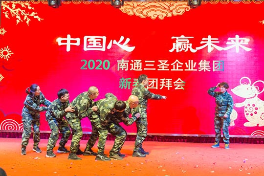 為了弘揚(yáng)體育健身精神,本次年會(huì)上凸顯對(duì)“體育強(qiáng)則中國(guó)強(qiáng)”的高度關(guān)注:曾參加今年“南通國(guó)際馬拉松”賽事的三圣健將們,高舉國(guó)旗、彩球,插上雙翼、身披戰(zhàn)袍,用自己的特殊方式,威風(fēng)凜凜地依次入場(chǎng);彩虹跑小組成員也自信亮相,搞怪機(jī)靈的鼠大哥帶著鼠弟鼠妹接過(guò)豬師兄的接力棒開(kāi)啟了2020新大門(mén),合唱合舞燃爆現(xiàn)場(chǎng)。