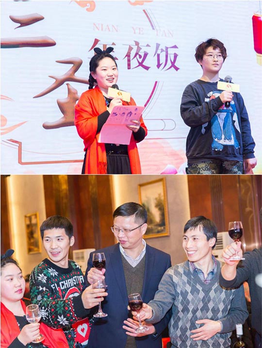 一年一度的三圣年夜飯,集團(tuán)所有員工歡聚一堂,公司準(zhǔn)備豐盛宴席,答謝不辭辛苦的員工、熱心支持的合作伙伴。席間,大家暢所欲言,互敬美酒,互道祝福,溫馨的大家庭其樂(lè)融融。